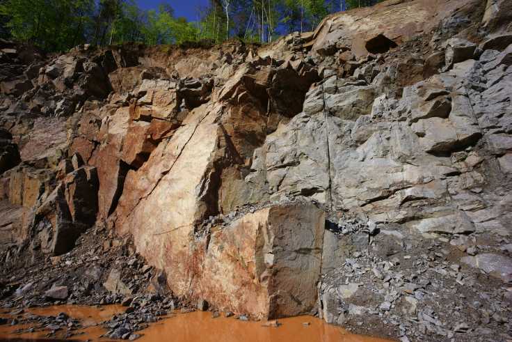 Der inzwischen große Steinbruch schließt den Diorit, auch rötliche