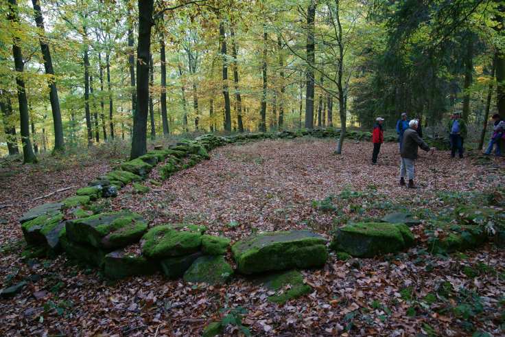 Links. Der alte Steinbruch im Sandstein bei Heigenbrücken - der